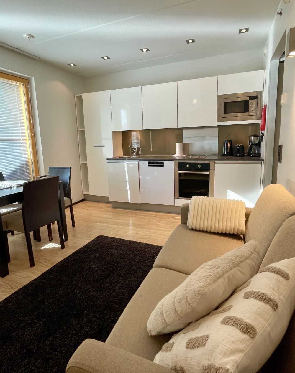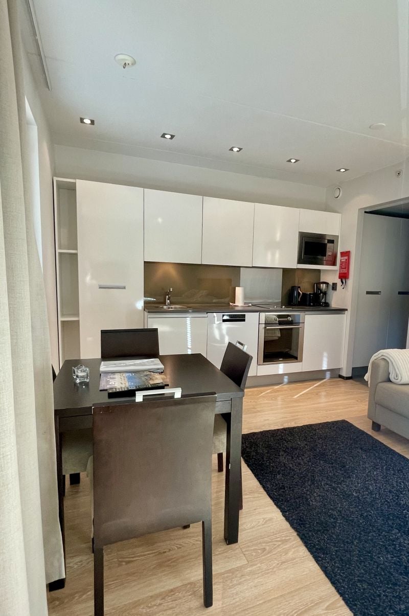 Saunallinen studiohuoneisto lisävuoteella. Pienestä keittiöstä löydät perustarpeet kokkailuun; liesi, uuni, jääkaappi, astianpesukone mikroaaltouuni, kahvinkeitin, vedenkeitin, leivänpaahdin, astiasto ja muut keittiövälineet.
